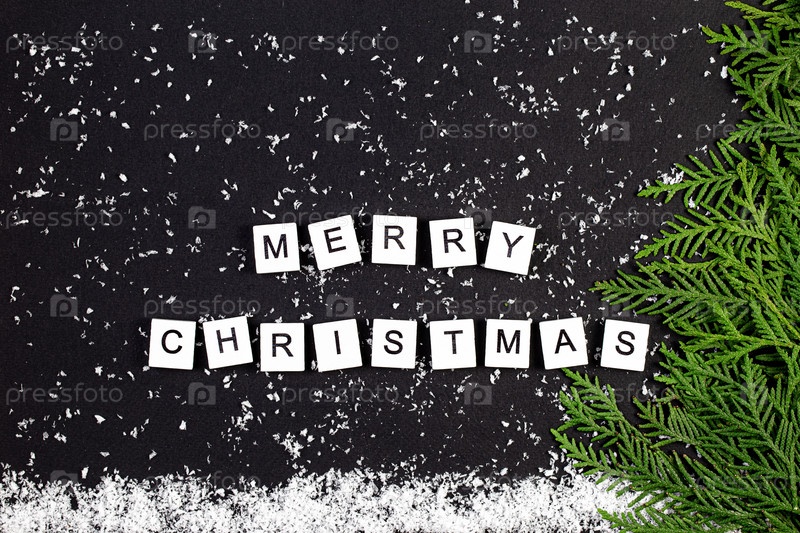 Зеленая рождественская елка из ветвей хвойных деревьев и снежинок на темном фоне