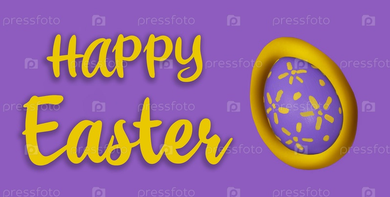 Баннер. Окрашенное фиолетовое пасхальное яйцо на фоне желтой и фиолетовой бумаги