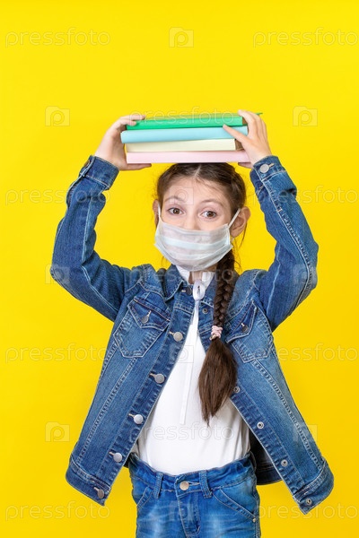 Школьница с рюкзаком в повседневных джинсах и джинсовой рубашке