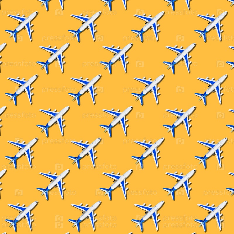 Узор, бесшовная текстура модели самолета, самолет на желтом фоне