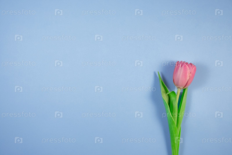 Розовые тюльпаны цветут на синем фоне. Открытка на день матери