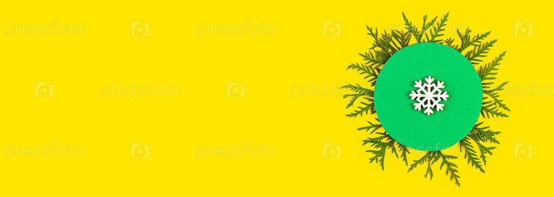 Рождественский баннер с ветвями хвойных деревьев и снежинкой