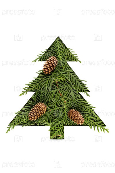 Рождественская елка из ветвей хвойных деревьев на белом фоне