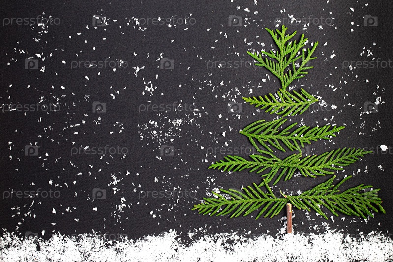 Рождественская елка из ветвей хвойных деревьев на темном фоне