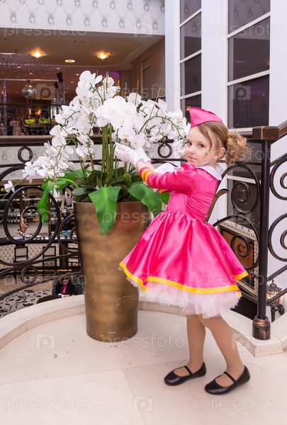 Радостная девочка в красивом модном платье