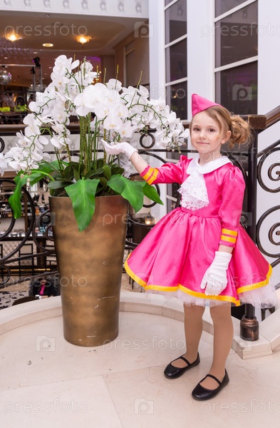 Радостная девочка в красивом модном платье