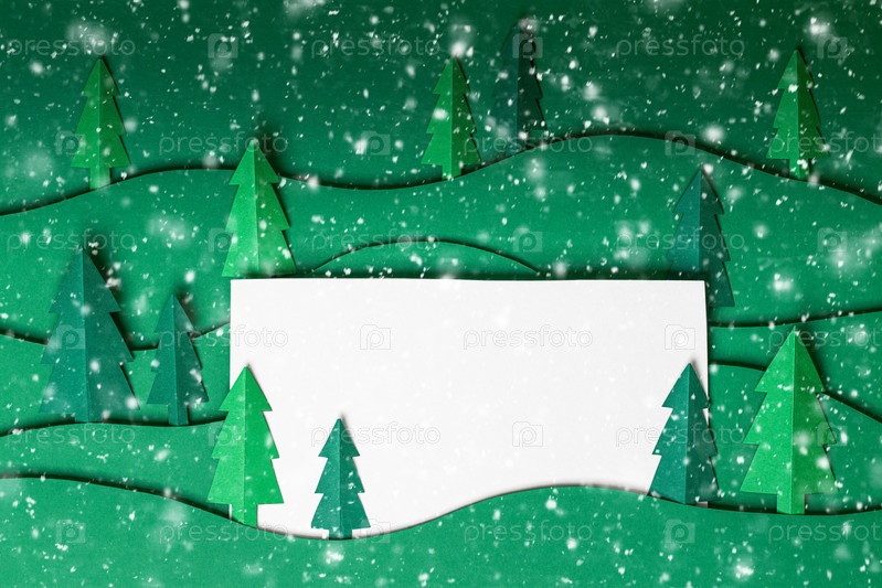 3D всплывающие рождественские елки из бумаги на зеленом фоне