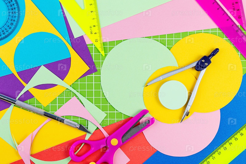 Композиция со школьными принадлежностями на цветном фоне. квартира лежала обратно в школу