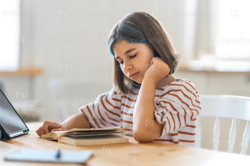 Девушка делает домашнее задание или онлайн-образование