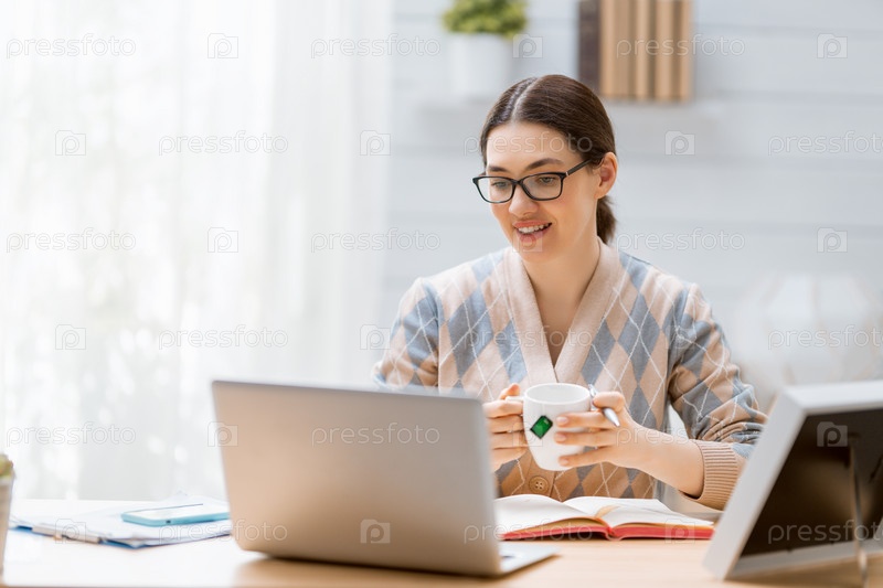 Женщина работает за ноутбуком