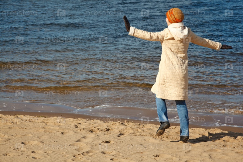 Женщина идет вдоль берега