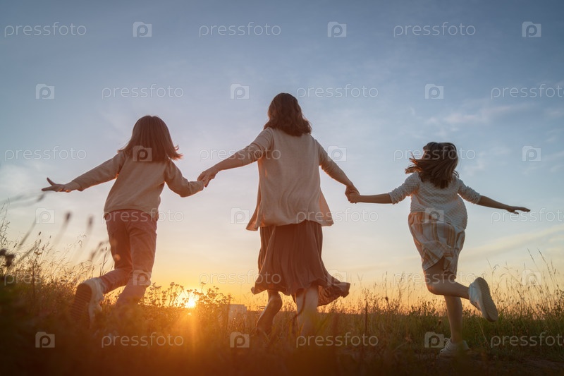 Счастливая семья на закате