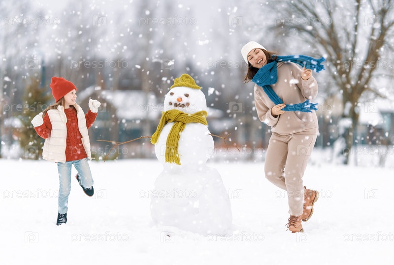 Мать и девочка на зимней прогулке