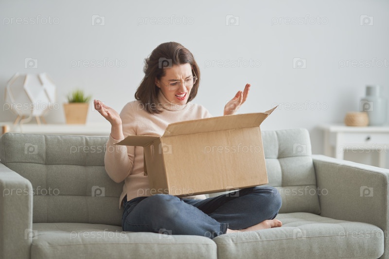 Женщина держит картонную коробку