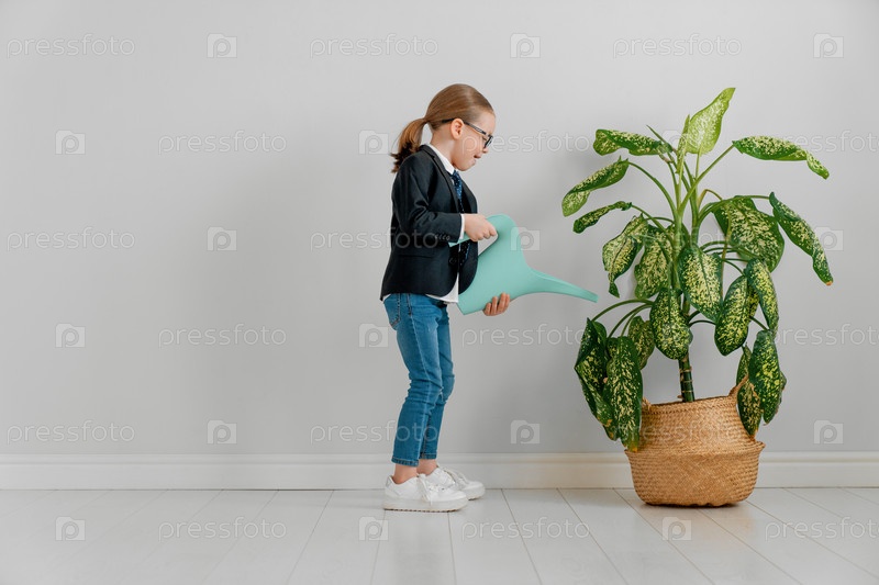 Малыш поливает растение