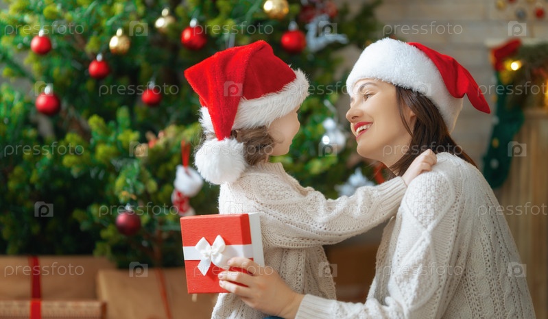 Семья празднует рождество