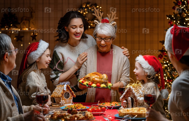 Семья празднует рождество