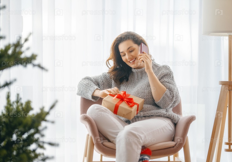 Женщина возле елки