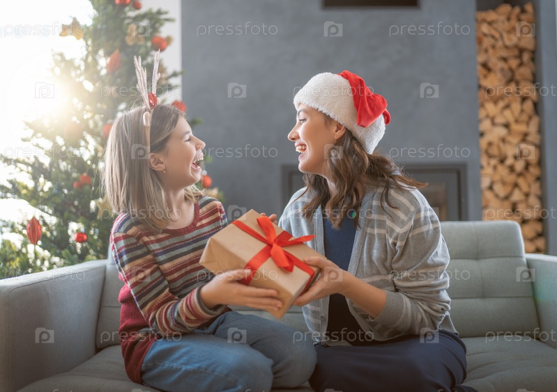 Семья празднует рождество
