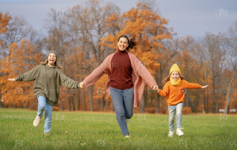 Счастливая семья на осенней прогулке