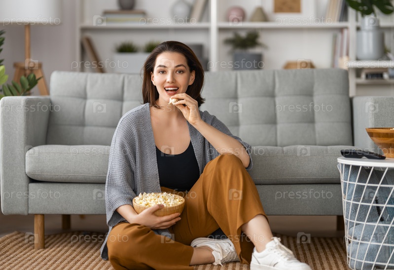 Женщина смотрит телевизор