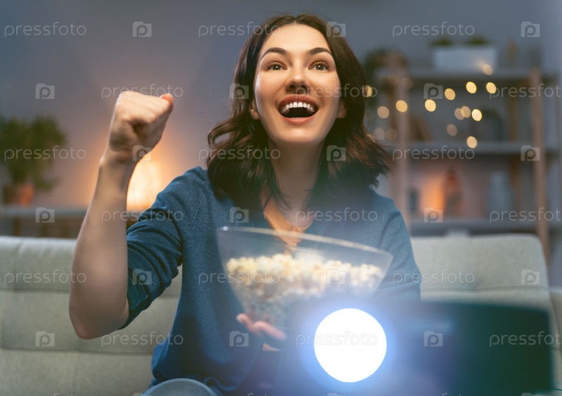 Женщина смотрит проектор