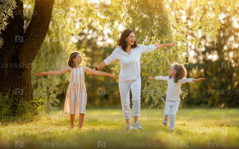 Счастливая семья на закате