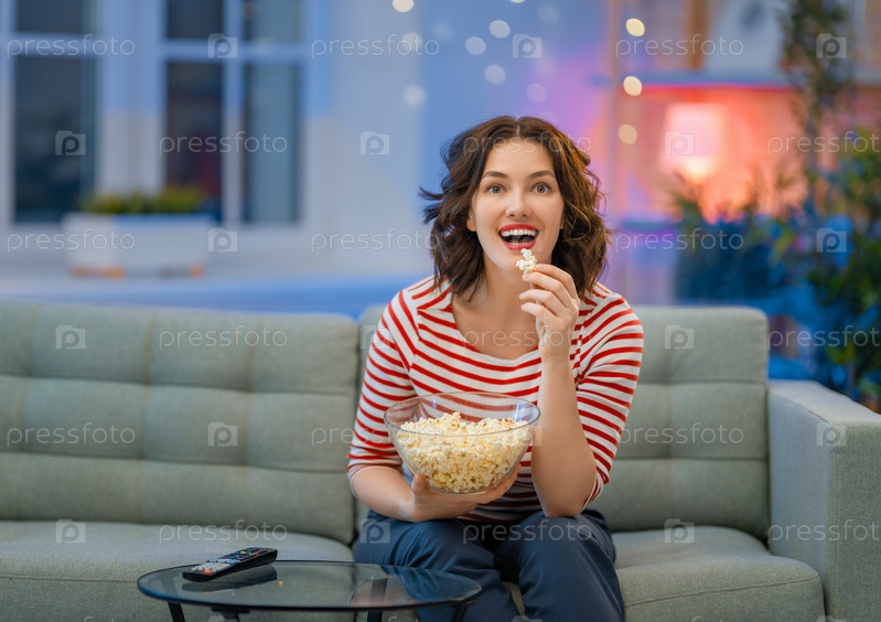 Женщина смотрит телевизор
