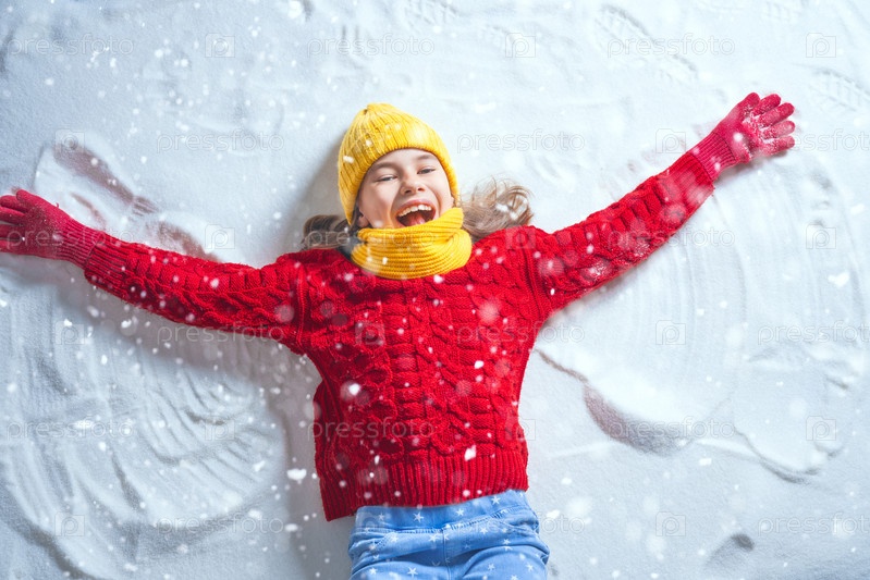 Малыш делает снежного ангела