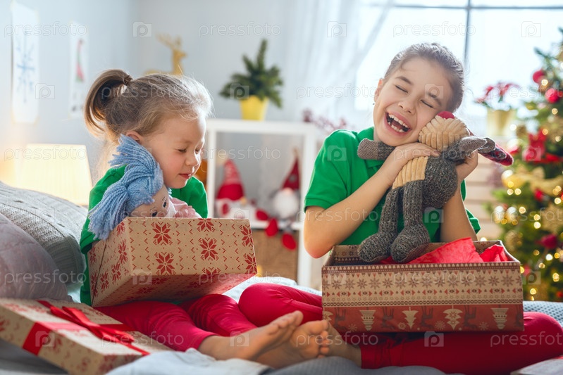 Дети открывают рождественские подарки