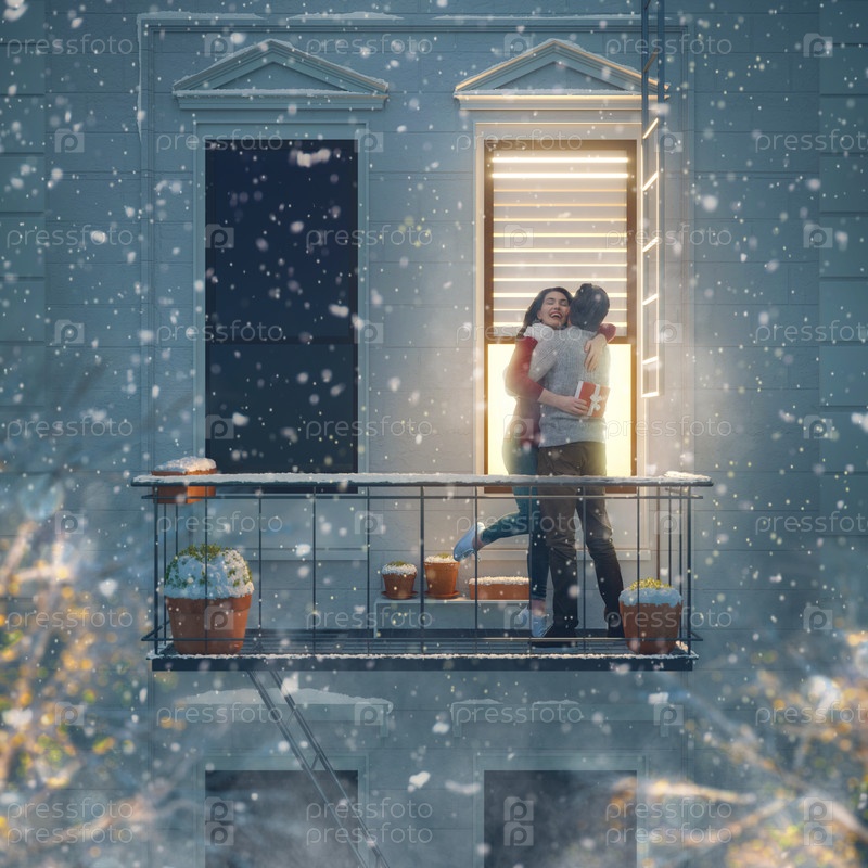 Пара на балконе в День святого Валентина