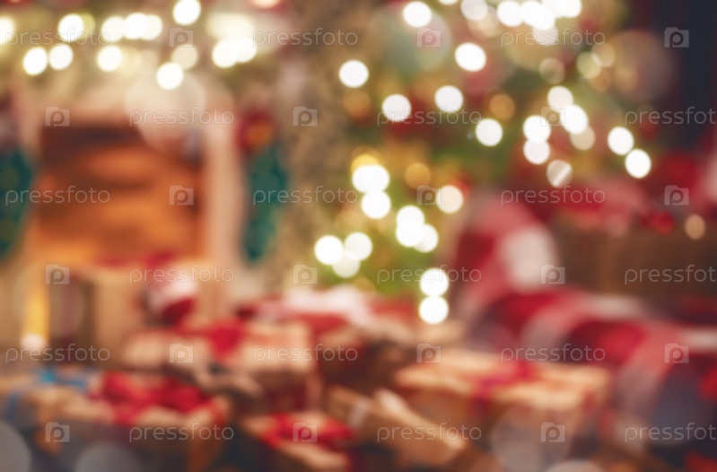 Подарочные коробки в украшенном зале