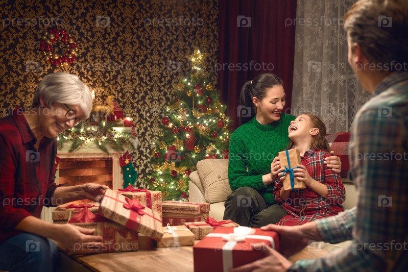 Семья празднует рождество