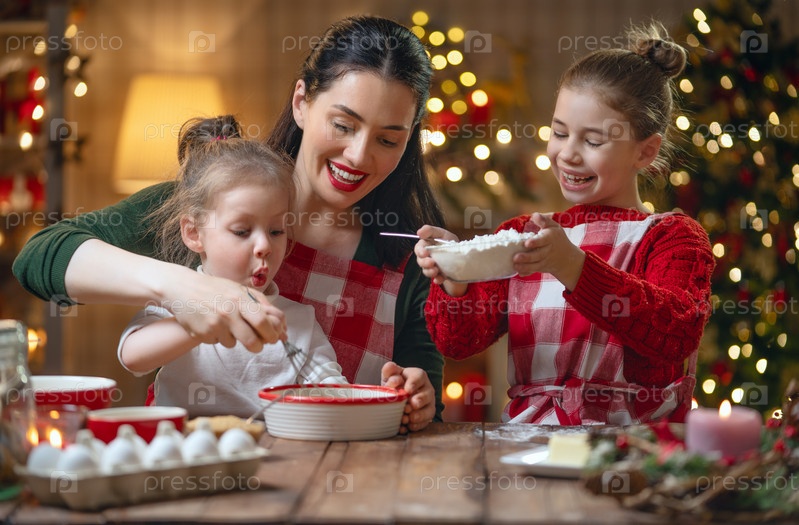 Семья готовит рождественское печенье