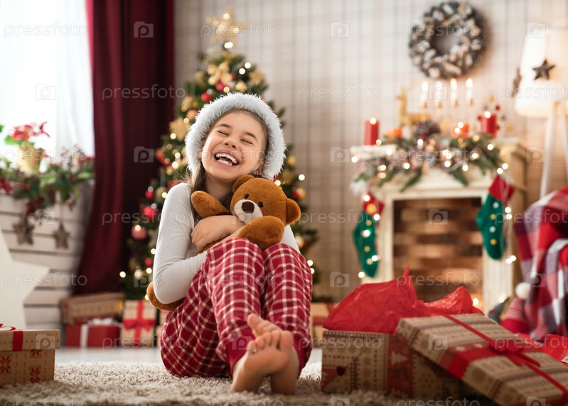 Девочки открывают новогодние подарки
