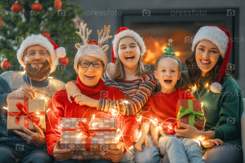 Семья празднует рождество