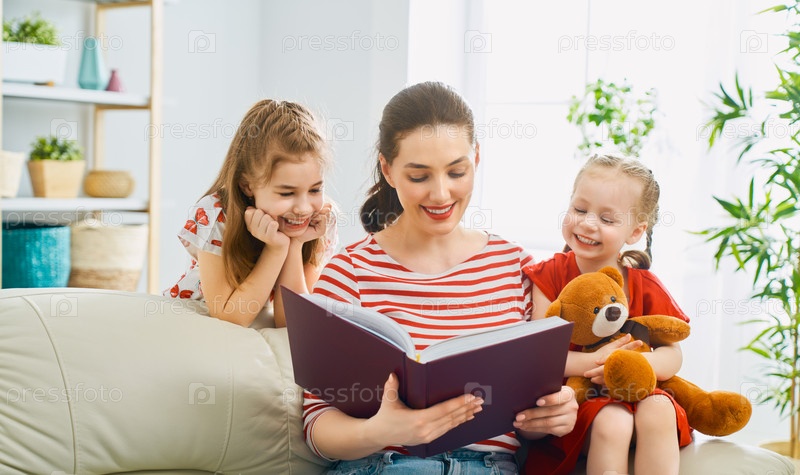 Мама читает книгу дочерям