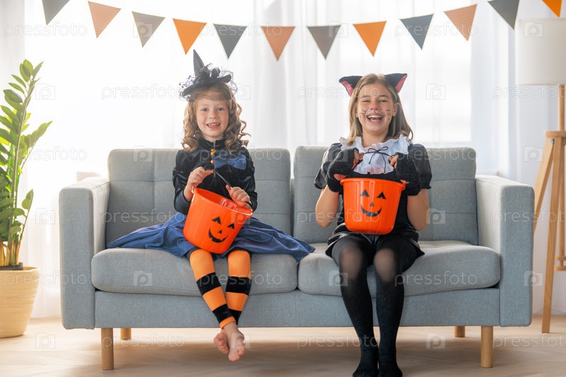 Счастливая семья празднует Хэллоуин