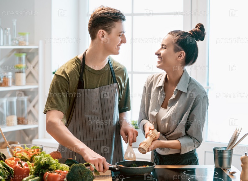 Влюбленная пара готовит правильную еду