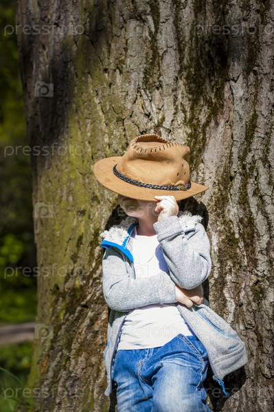 Милый мальчик играет с медвежонком в лесу. Солнечные лучи окутывают пространство. Волшебная история взаимодействий для книги. Место для копирования