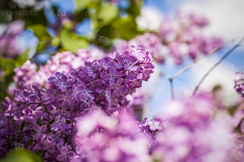 Красивая и ароматная сирень в саду. Крупный план с копией пространства на фоне природного ландшафта. Натуральные обои. Выборочный фокус