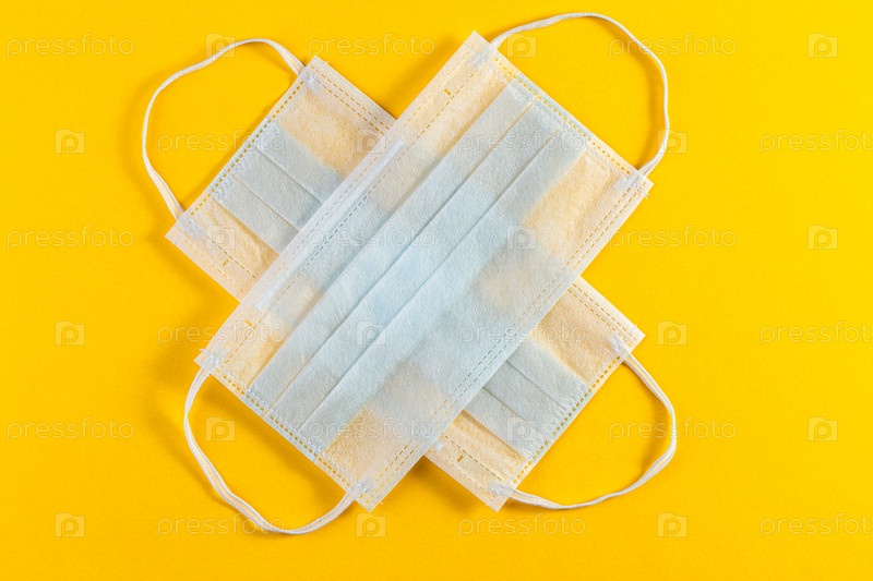 Предотвратить коронавирус. Медицинская защитная маска на желтом фоне. Защита от короны