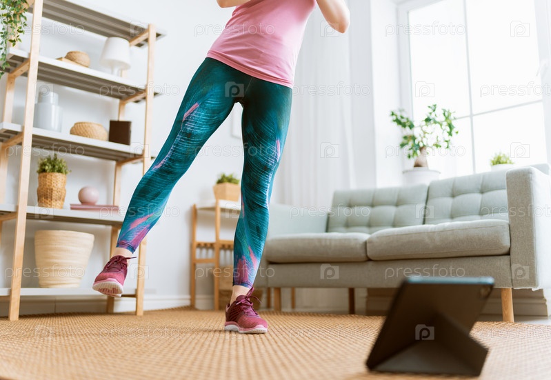 Женщина делает зарядку дома