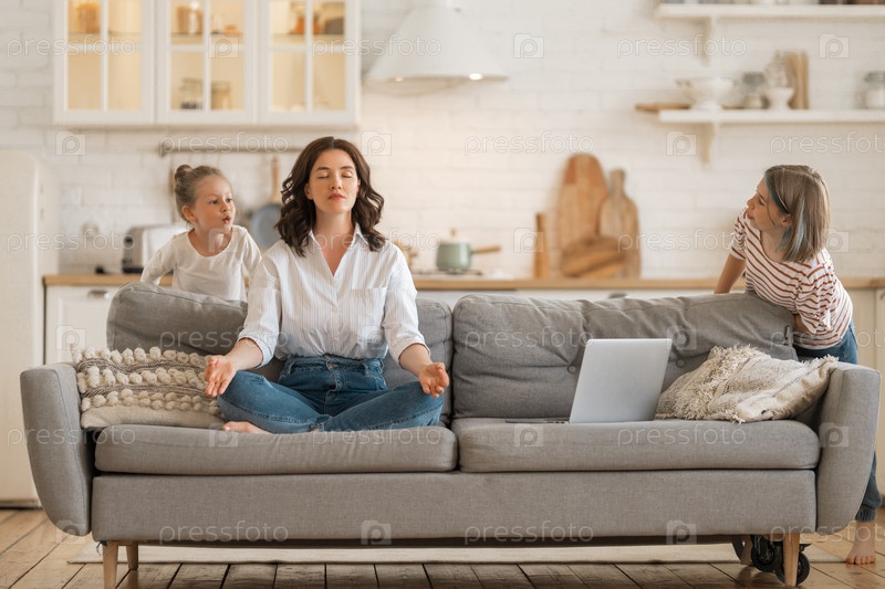 Женщина медитирует дома