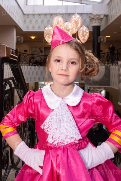 Радостная девочка в красивом модном платье
