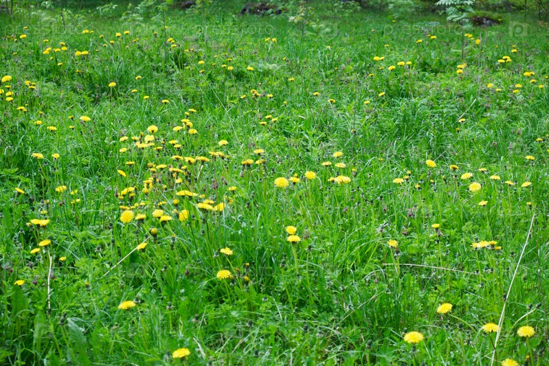 Желтые одуванчики на лугу летом, поле цветов