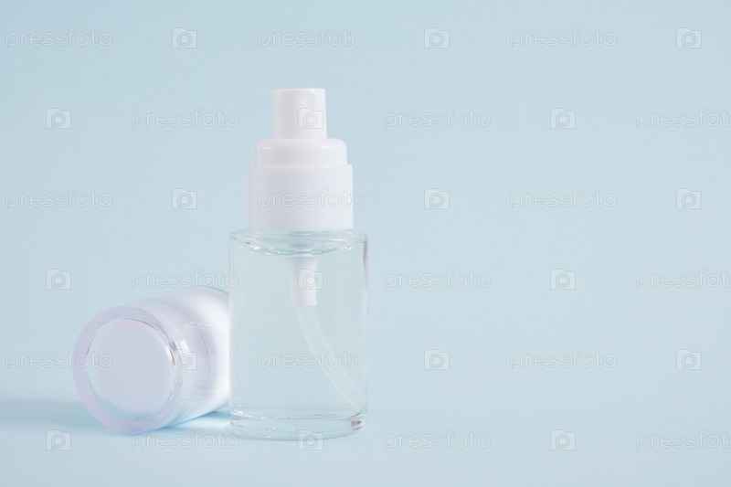 Макет пустого стеклянного баллончика с белой крышкой на голубом фоне