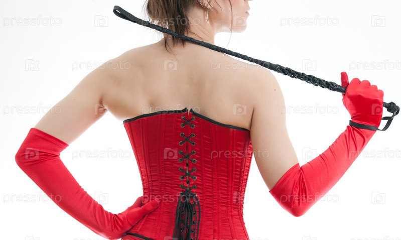 Женщина в красном корсете с хлыстом