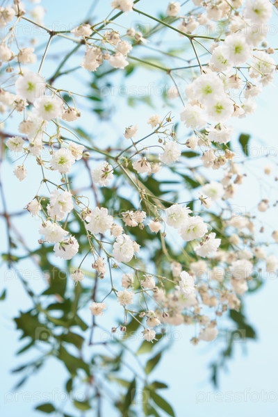 Цветы гипсофила на синем фоне копией пространства