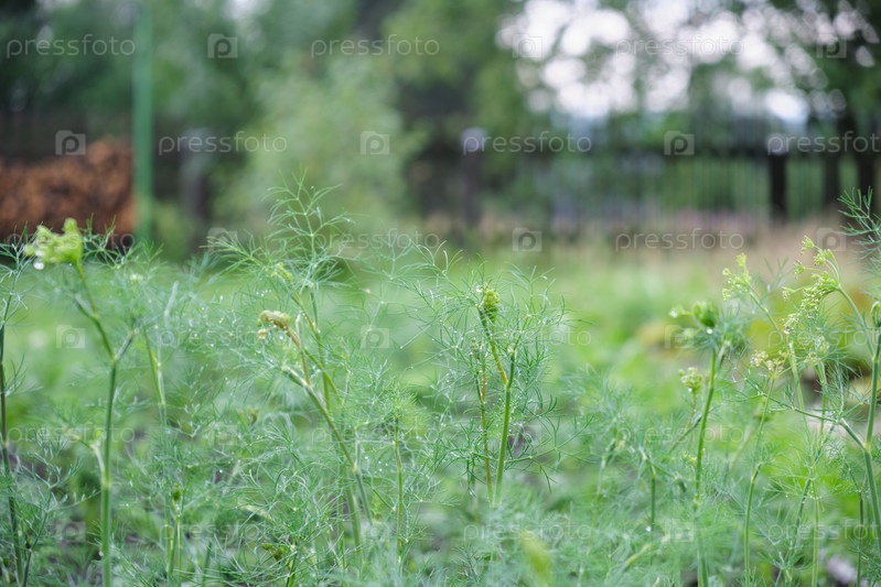 Летом в саду растет зеленый укроп